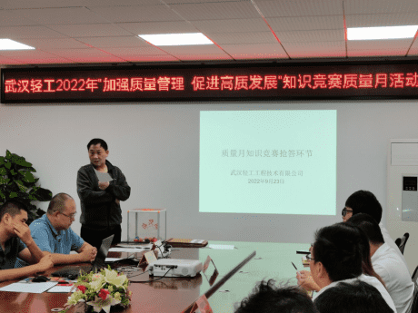 為貫徹落實(shí)湖北省住房和城鄉(xiāng)建設(shè)廳《關(guān)于組織開展2022年“質(zhì)量月“活動(dòng)的通知》廳頭[2022]1793號(hào)文的精神、武漢建筑業(yè)協(xié)會(huì)建筑檢測(cè)分會(huì)《關(guān)于開展2022年“質(zhì)量月”活動(dòng)的通知》精神、為促進(jìn)工程質(zhì)量不斷提升,營(yíng)造我公司“質(zhì)量至上”的良好氛圍,樹立質(zhì)量第一的理念意識(shí),我公司以“質(zhì)量月”為契機(jī),根據(jù)本公司發(fā)展需求,為規(guī)范管理,以實(shí)際行動(dòng)迎接黨的二十大勝利召開,將質(zhì)量管理活動(dòng)抓實(shí)抓牢,強(qiáng)調(diào)履職盡責(zé),為公司平穩(wěn)有序發(fā)展打下堅(jiān)實(shí)基礎(chǔ)。武漢輕工工程技術(shù)有限公司(以下簡(jiǎn)稱武漢輕工)于2022年9月23日組織開展了“武漢輕工2022年加強(qiáng)質(zhì)量管理促進(jìn)高質(zhì)發(fā)展”知識(shí)競(jìng)賽質(zhì)量月活動(dòng)。
